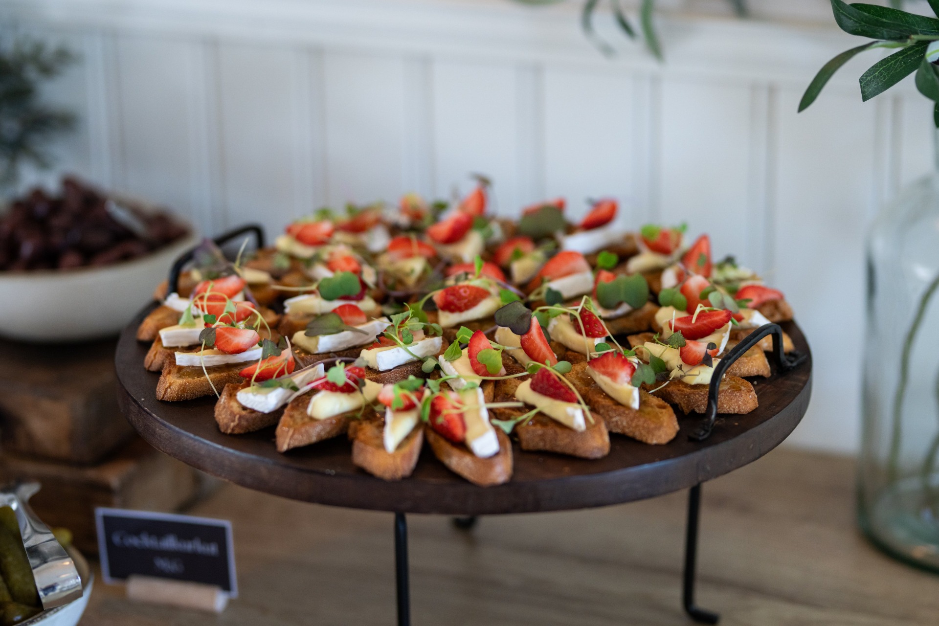Crostineja briejuustolla, viikunahillolla ja mansikoilla (L)